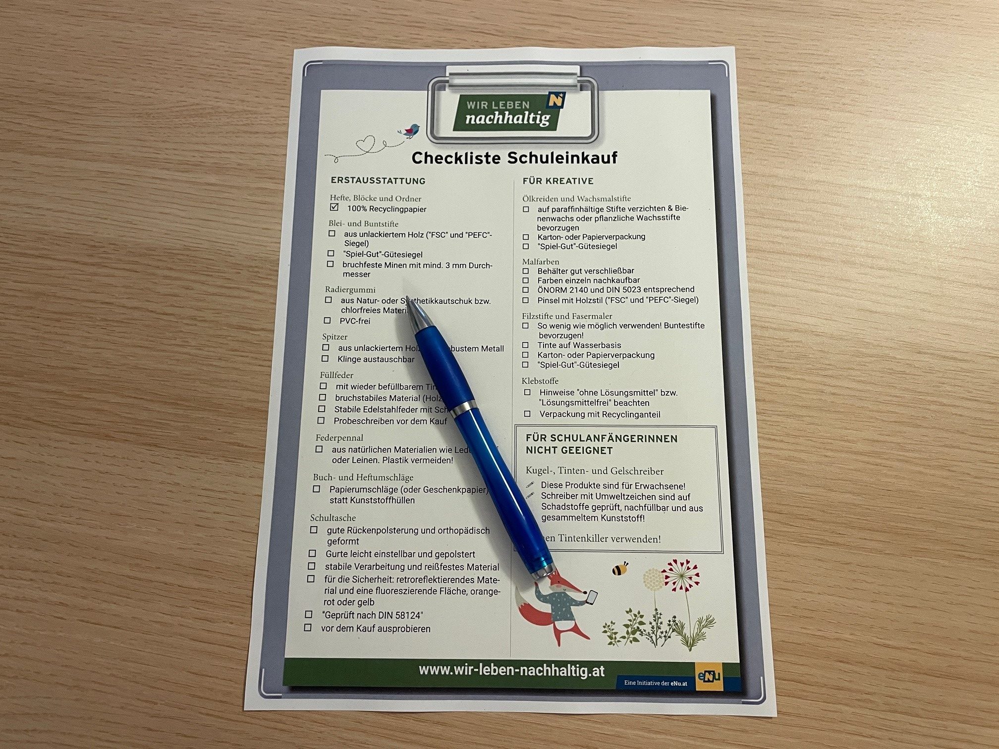 Checkliste für den nachhaltigen Schuleinkauf