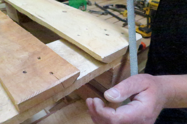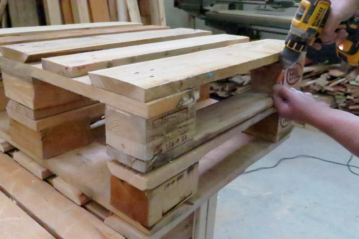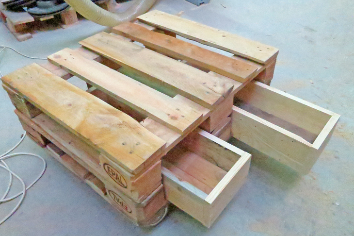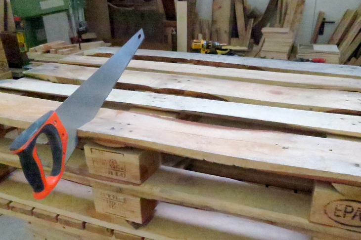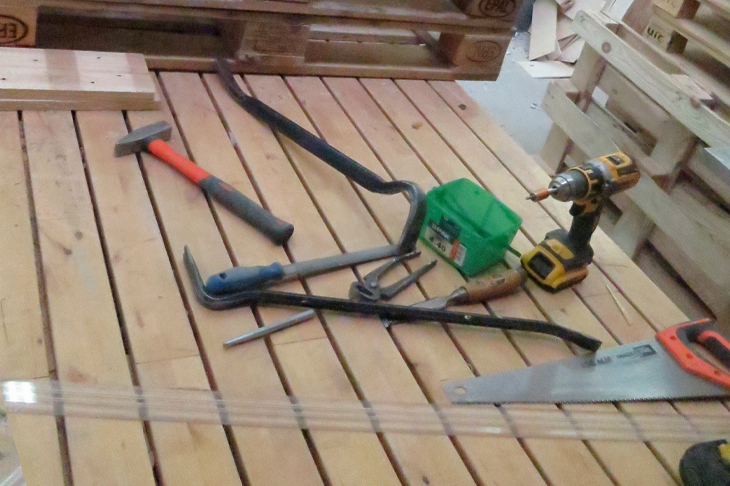 Um einen Couchtisch aus 2 Paletten herzustellen brauchen Sie nur etwas Werkzeug, Schrauben und Nägel. Prüfen Sie die beiden Paletten (120 cm Länge und 80 cm Breite) auf Fehler (Risse im Holz, lose Bretter, Holzfehler).