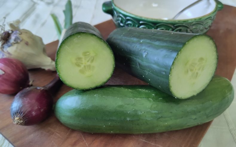 Zutaten: 300g Gurke, 1,5 l Sauermilch, frische Dille, Salz, Pfeffer, 1 Zehe Knoblauch, etwas Zitronensaft, 4 mittlere Erdäpfel (optional)